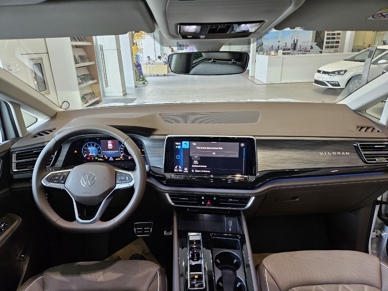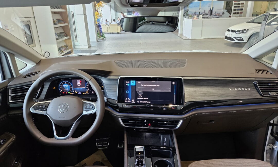 Chiều dài cơ sở của Volkswagen Viloran 2024 là 3.180 mm, điều này chính là điểm mấu chốt giúp cho phần thiết kế không gian nội thất bên trong của xe trở nên rất rộng rãi, thoải mái cho 7 người sử dụng. Cửa và bảng táp lô xe được ốp vân gỗ, kèm theo các chi tiết điểm nhấn được mạ crom sáng bóng, tinh tế và sang trọng. Màu da nội thất có 2 tùy chọn là màu Be nhẹ nhàng, trang nhã và màu Nâu da bò lịch sự, sang trọng. Chiếc xe cũng được trang bị gạt mưa tự động hay gương chiếu hậu chống chói bên trong.