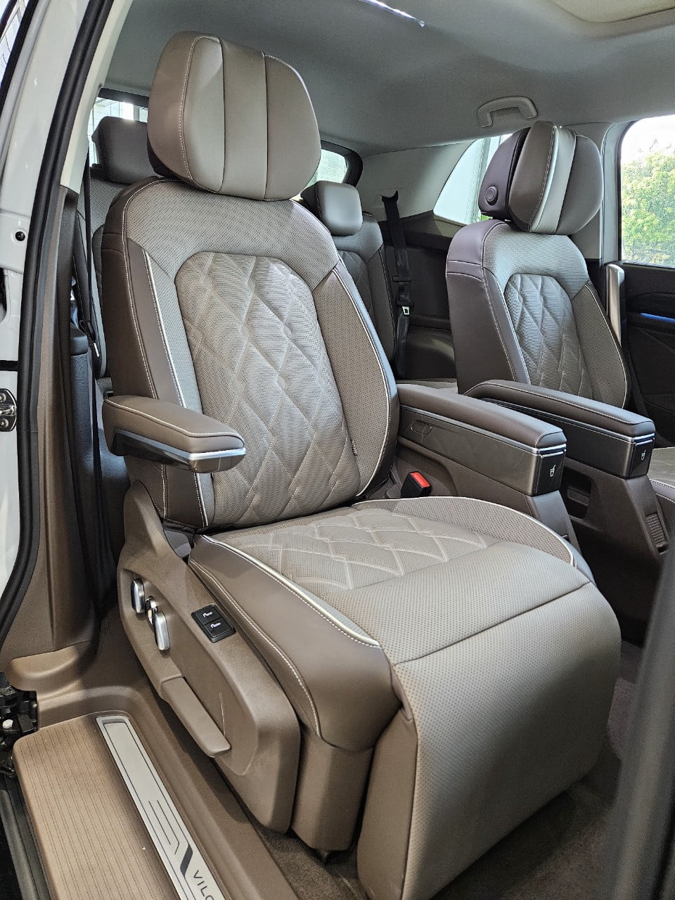 Đánh giá Volkswagen Viloran 2024 về khu vực hàng ghế, toàn bộ ghế trên xe đều được bọc da cao cấp với các chức năng đi kèm giúp hành khách có những giây phút ngồi xe dễ chịu nhất.
